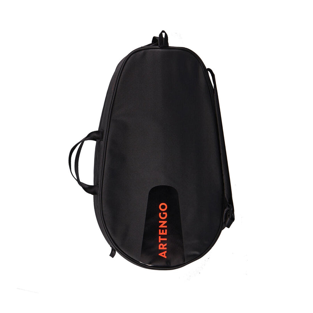 Este pequeño raquetero Artengo te permite llevar tus objetos esenciales de tenis con un volumen mínimo, ya que los mangos de las raquetas quedan fuera del raquetero.