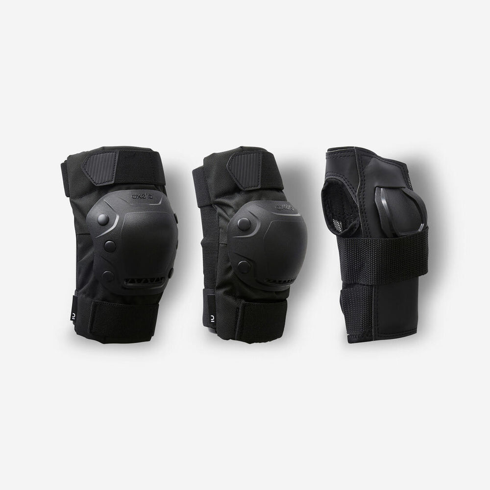 El equipo Oxelo ha diseñado este conjunto de 3 protecciones (rodilleras, coderas y muñequeras) para que disfrutes al máximo de las salidas en patines.