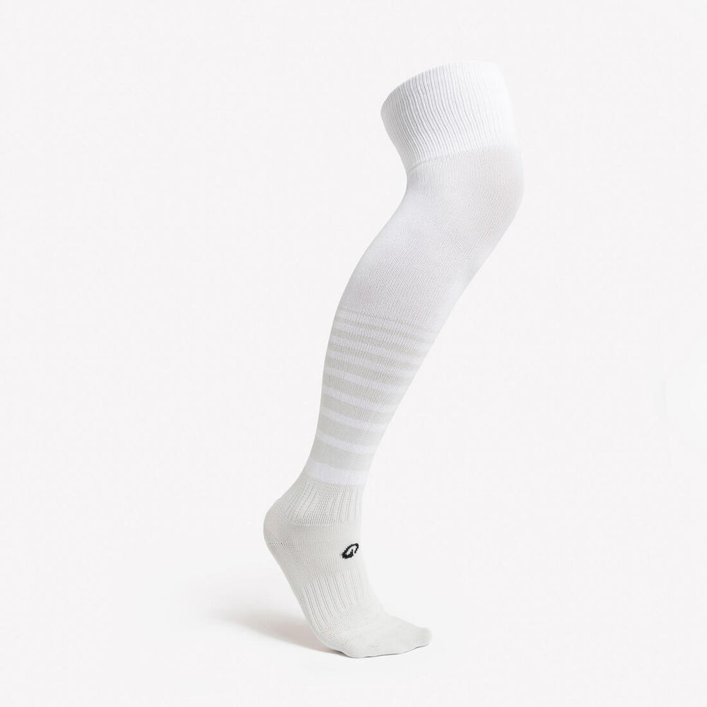 Las calcetas de fútbol VIRALTO tienen una tira elástica en la parte media del pie que asegura una buena sujeción durante el juego, por no hablar de su tejido aireado, que deja respirar bien los pies.