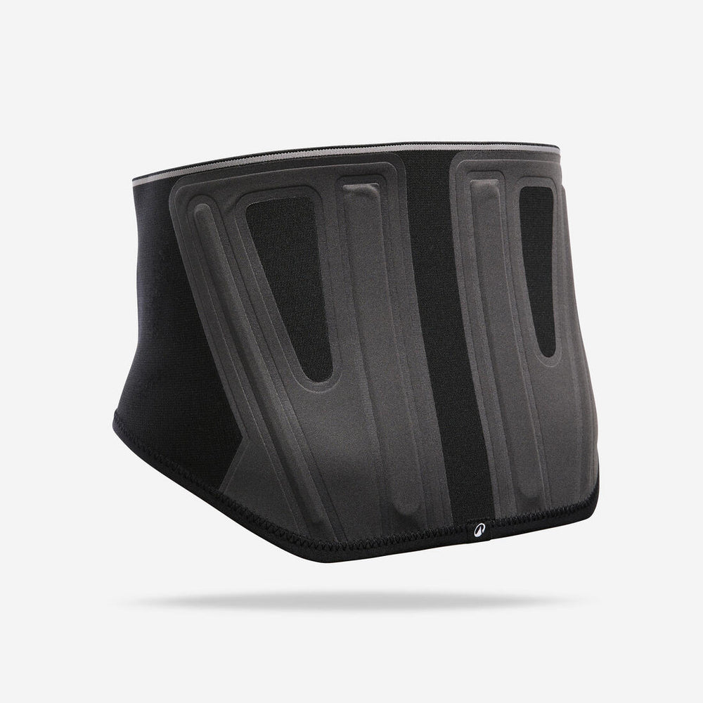 Sujeción reforzada, nivel 4 sobre 5, para la zona lumbar, gracias a sus refuerzos flexibles. Ideal para usar durante la práctica deportiva.
