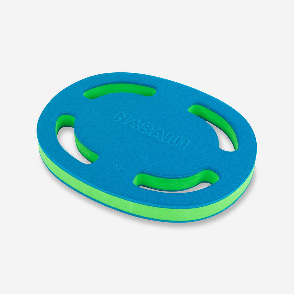 Nabaiji ofrece 3 experiencias:«Descubrir el agua», «Aprender a nadar» y «Progresar bajo el agua». La tabla de natación de goma forma parte de la experiencia «Aprender a nadar»: el niño ya se siente seguro en el agua, sabe usar brazos y piernas para equilibrarse. Esta pequeña tabla le permitirá descubrir la posición del nadador (posición horizontal) para iniciar los primeros movimientos de piernas y también la coordinación de los brazos mediante movimientos alternos.